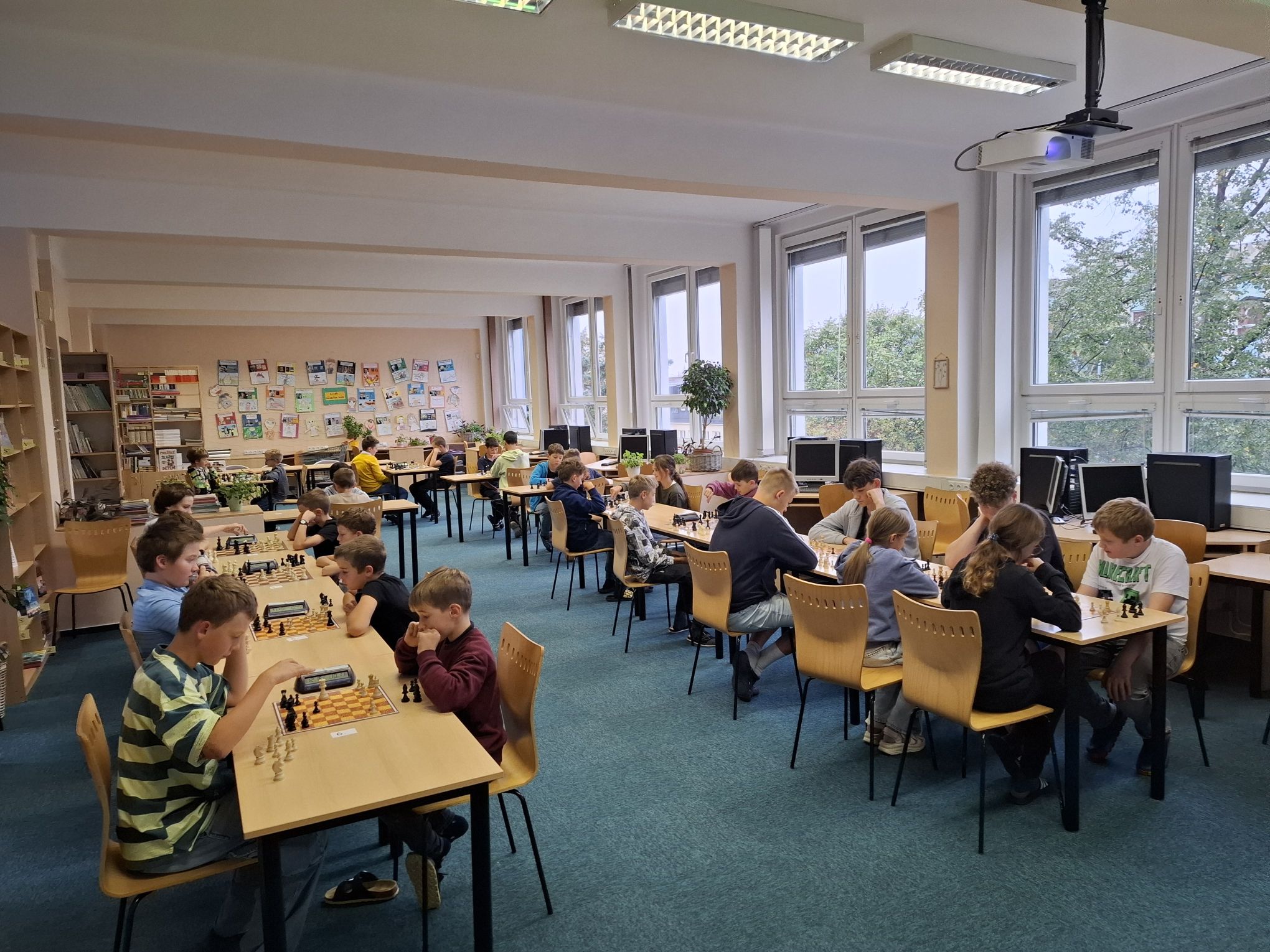 Ve čtvrtek 25. 9. se konal první šachový turnaj žáků naší školy. Vzhledem k velké účasti byl turnaj rozdělen na turnaje dva – pro žáky 1. stupně a pro žáky 2. stupně. Žáci sehráli sedm partií švýcarským systémem tempem 2x 15 minut.