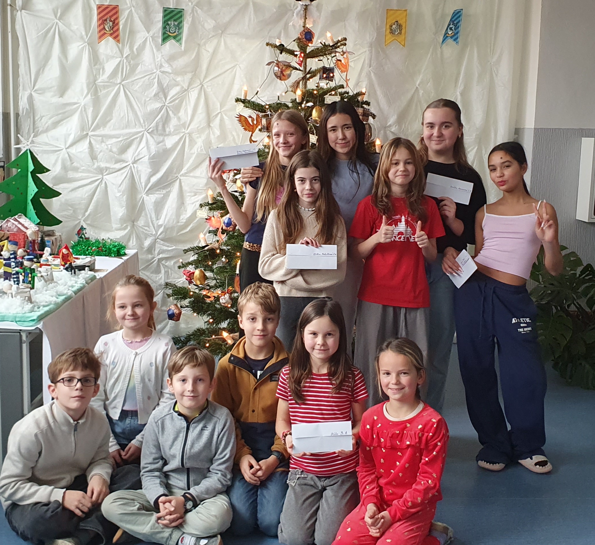 V minulém měsíci paní učitelky výtvarné výchovy vyhlásily výtvarnou soutěž na téma Filmové vánoce. Zúčastnit se jí mohli jak jednotlivci, tak i třídní kolektivy žáků 1. i 2. stupně. Bylo zcela na jejich uvážení, jak dané téma pojmou a jak ho zpracují. Odborná porota, která posuzovala jejich kvalitu po stránce obsahu i provedení se shodla, že nakonec ocení všechny účastníky letošní soutěže. Každá z prací měla nápad a bylo vidět, že si autoři na svém díle dali záležet. Fotografie vystavených děl přikládáme spolu s momentkami z vyhlášení výsledků, které proběhlo právě dnes.