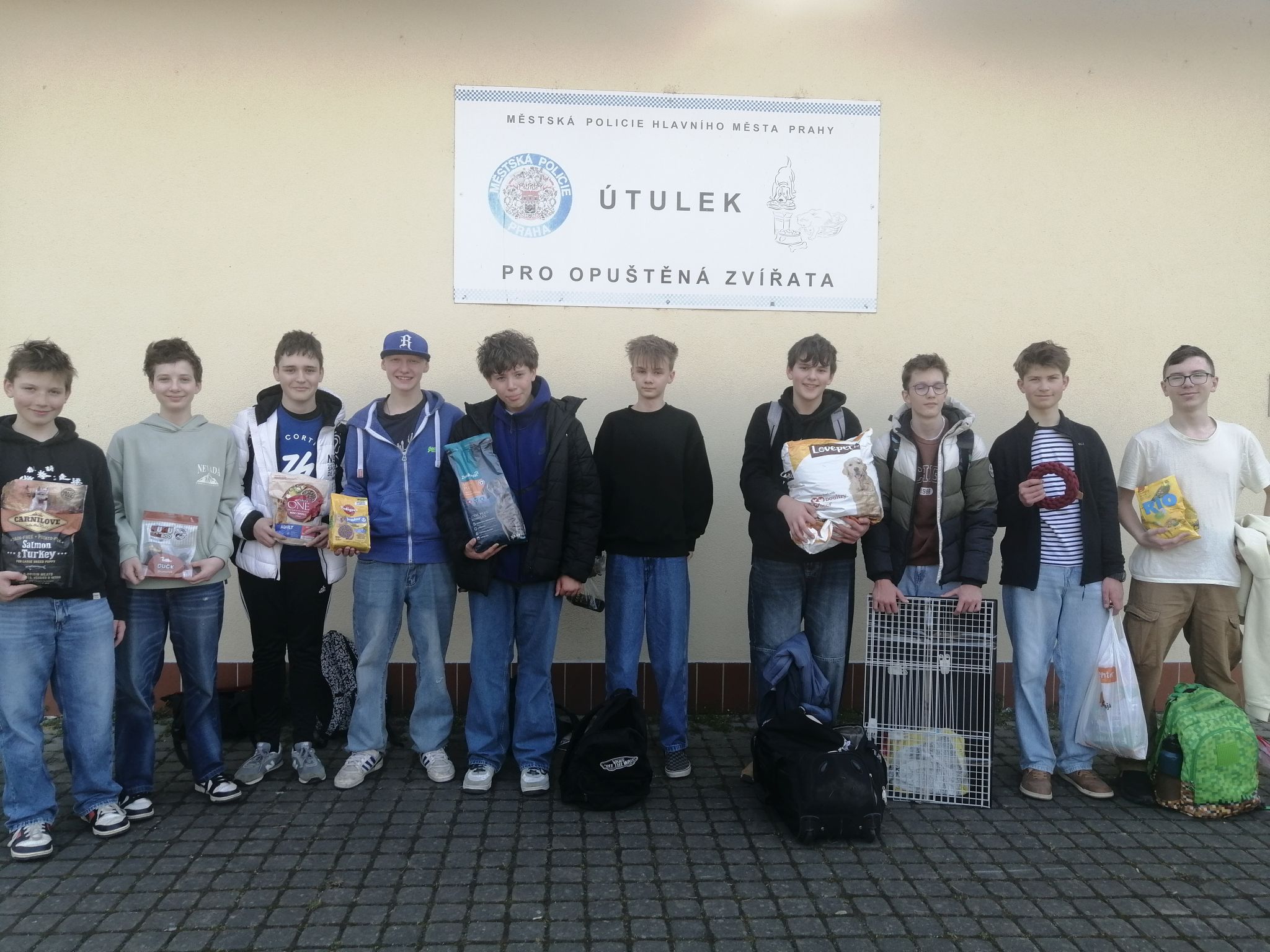 do útulku v Tróji. Kluci přinesli spoustu věcí pro opuštěné pejsky,