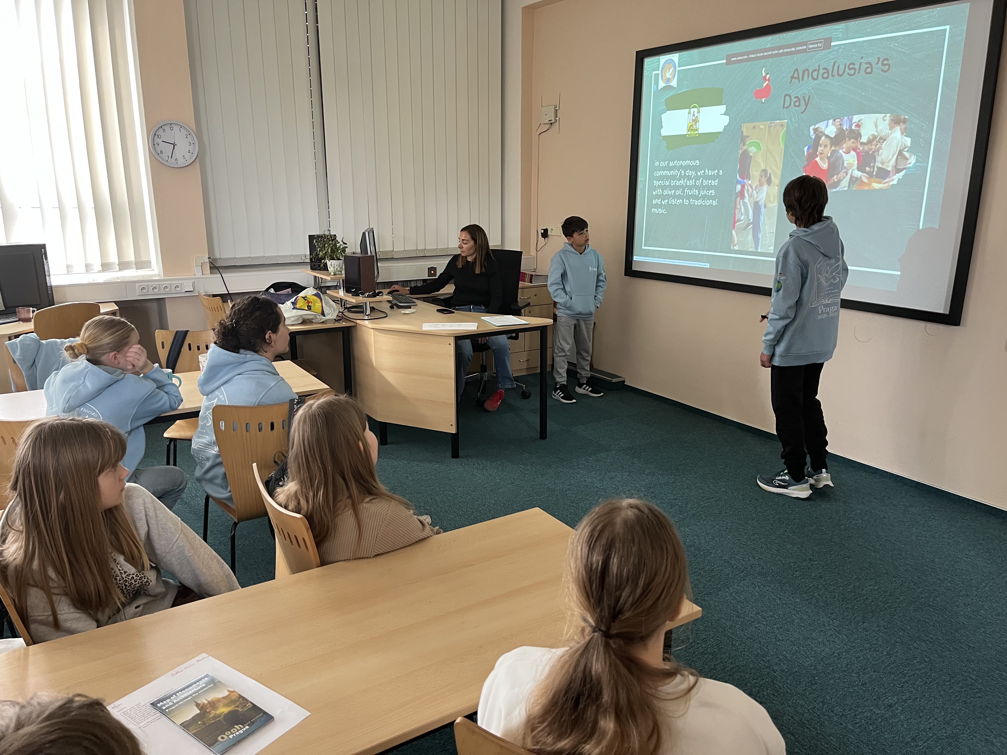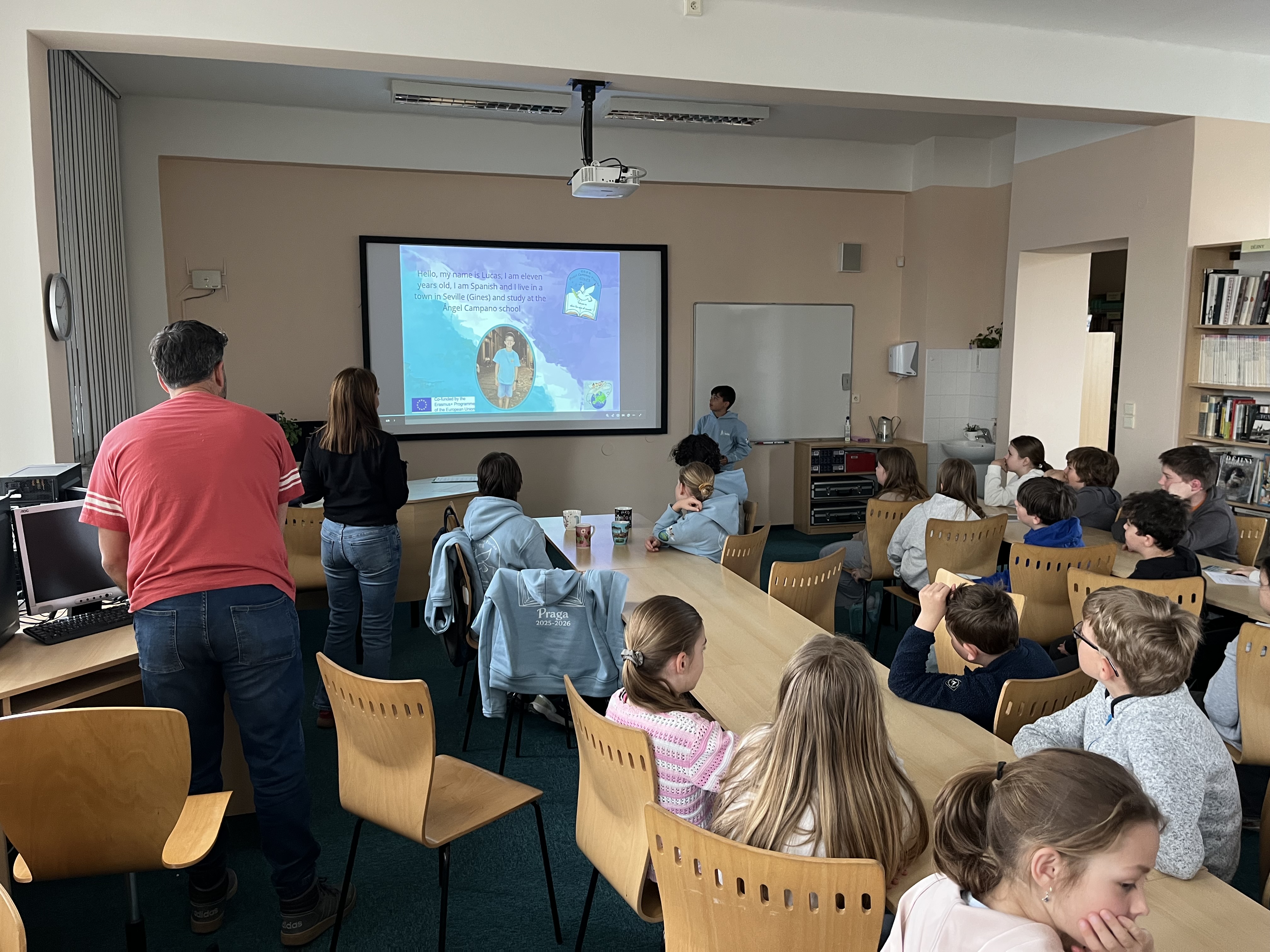 V týdnu od 13. do 17. dubna se naše škola proměnila v živé místo mezinárodního setkávání, kde se přirozeně prolínaly jazyky, kultura i radost ze společného objevování. Paní zástupkyně Daniela Vojtěchovská přivítala skupinu jedenáctiletých studentů a pedagogů ze španělské Sevilly v Andalusii, kteří k nám zavítali v rámci programu Erasmus+.